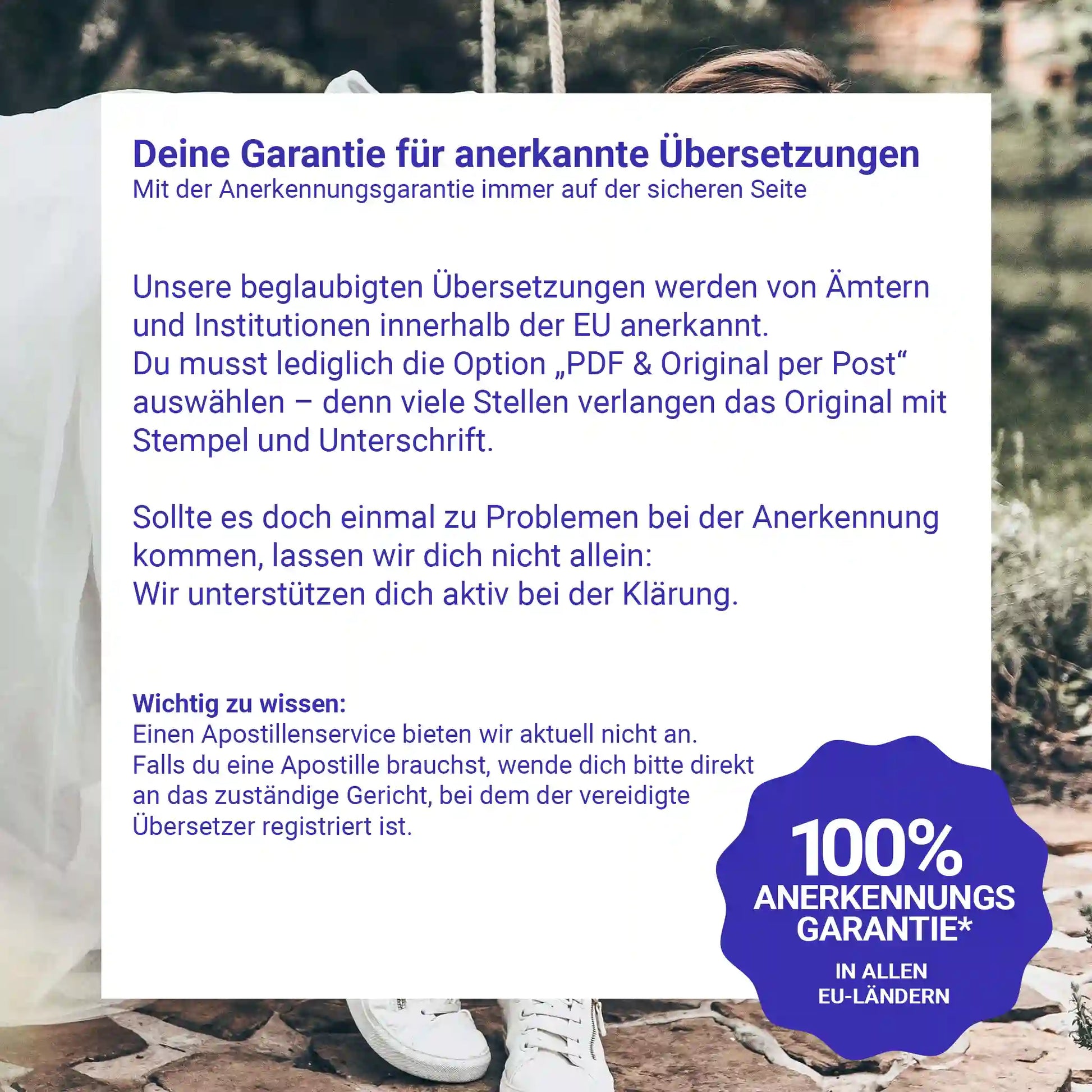 *Recognition guarantee: Our certified translations meet the formal requirements for recognition by authorities and institutions in the EU.
